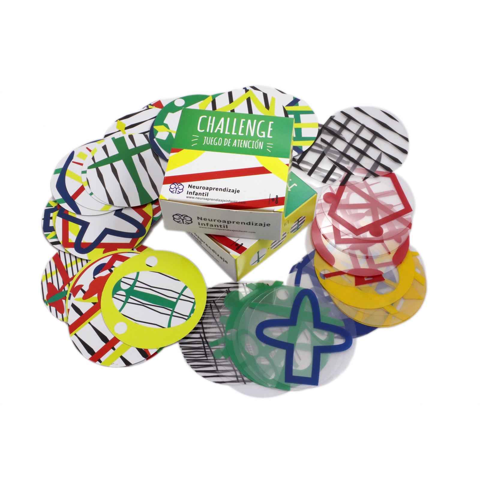 CHALLENGE es un juego de cartas que propone la estimulación de procesos atencionales, viso- perceptivos, de memoria visual y razonamiento espacial. El objetivo es analizar los desafíos, retener en la memoria de trabajo su forma o color y dar una respuesta adecuada. Una segunda etapa implica la identificación del orden en el cual la superposición de patrones determina la realidad completa. Se proponen ejercicios en 3 niveles de complejidad. Este juego puede ser utilizado por niños a partir de los 8 años de edad, así como por adultos mayores con riesgo de deterioro cognitivo.