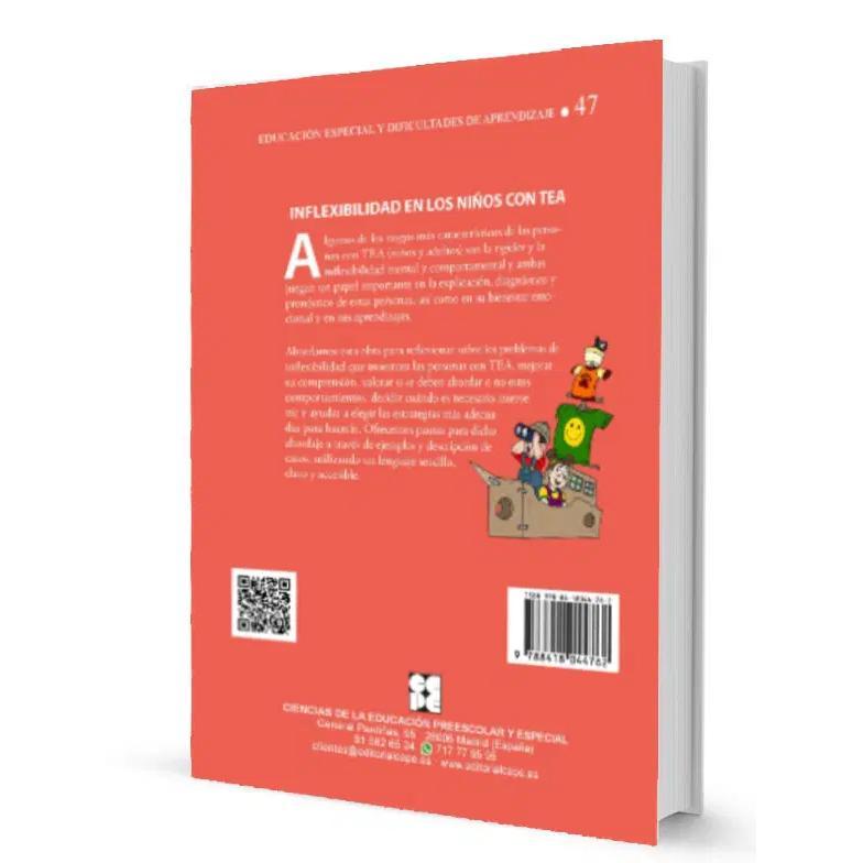 La inflexibilidad y el patrón rígido de conducta han formado parte de los rasgos nucleares o primarios del trastorno TEA. A lo largo de los años se ha profundizado en esta característica nuclear del autismo y se ha estudiado su correlato neurobiológico y también se han ampliado las manifestaciones conductuales que se incluyen dentro el problema de la inflexibilidad de las personas con TEA. Pero hoy en día apenas contamos con manuales o programas centrados en explicar y abordar esta dimensión de los TEA. Con este libro pretendemos poner nuestro granito de arena en ese “vacío”, responder a algunas de las preguntas que nos hacen muchas familias y profesionales. En esta obra comenzamos explicando tanto el significado del término inflexibilidad, como sus efectos en el día a día de estas personas. Abordamos el tema de las estereotipias motoras y las conductas autoestimulatorias que son tan características en los niños con TEA, así como la necesidad de invarianza que muestran estos niños, su deseo de que los entornos sean predecibles, estables y sin cambios significativos. Estudiamos también los rituales de conducta, la necesidad de realizar actividades siempre de la misma manera, y la tendencia a repetir secuencias de juego, aportando estrategias prácticas para reducir esa necesidad de llevar a cabo secuencias de acciones repetitivas. Muchos niños con TEA repiten retahílas, anuncios y otras expresiones escuchadas en diferentes contextos, y a algunos les gusta producir sonidos sin valor comunicativo por el simple placer de escucharlos, y otros muestran la necesidad de preguntar una y otra vez las mismas cosas. También explicamos la presencia de intereses absorbentes y restringidos, y dedicamos un capítulo al pensamiento flexible y creativo. Describimos ejemplos y situaciones que vemos en estos niños y también adultos, y ayudamos a analizar el abordaje de estos comportamientos, recogemos pautas para decidir cuándo es necesario intervenir y explicamos estrategias para abordar las actuaciones que decidamos llevar a cabo. Con un lenguaje sencillo, lejos de tecnicismos y complicadas explicaciones teóricas, incluyendo ejemplos y situaciones reales, descripciones de casos específicos, aportamos una obra de gran ayuda, basada en la experiencia y la dedicación a las personas con TEA.