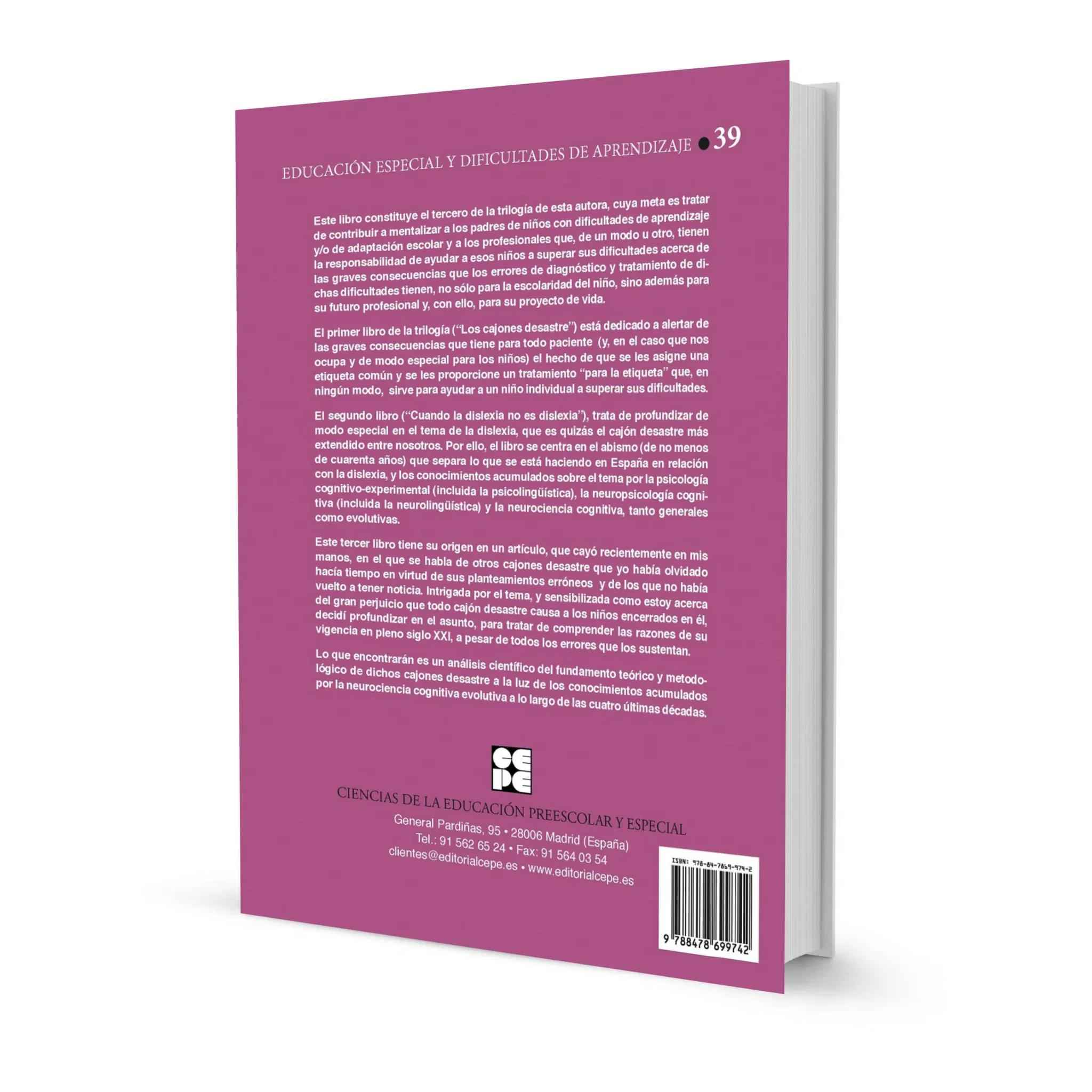 Este libro constituye el tercero de la trilogía de esta autora, cuya meta es tratar de contribuir a mentalizar, a los padres de niños y niñas con dificultades de aprendizaje y/o de adaptación escolar y a los profesionales que, de un modo u otro, tienen la responsabilidad de ayudar a esos niños a superar sus dificultades, acerca de las graves consecuencias que los errores de diagnóstico y tratamiento de dichas dificultades tienen, no sólo para la escolaridad del niño, sino además para su futuro profesional y, con ello, para su proyecto de vida. El primer libro de la trilogía (“Los cajones desastre“) está dedicado a alertar de las graves consecuencias que tiene para todo paciente (y, en el caso que nos ocupa y de modo especial para los niños) el hecho de que se les asigne una etiqueta común y se les proporcione un tratamiento “para la etiqueta” que, en ningún modo, sirve para ayudar a un niño individual a superar sus dificultades. El segundo libro (“Cuando la dislexia no es dislexia“) trata de profundizar de modo especial en el tema de la dislexia, que es quizás el cajón desastre más extendido entre nosotros. Por ello, el libro se centra en el abismo (de no menos de cuarenta años) que separa lo que se está haciendo en España en relación con la dislexia, y los conocimientos acumulados sobre el tema por la psicología cognitivo-experimental (incluida la psicolingüística) y la neurociencia cognitiva, tanto generales como evolutivas.