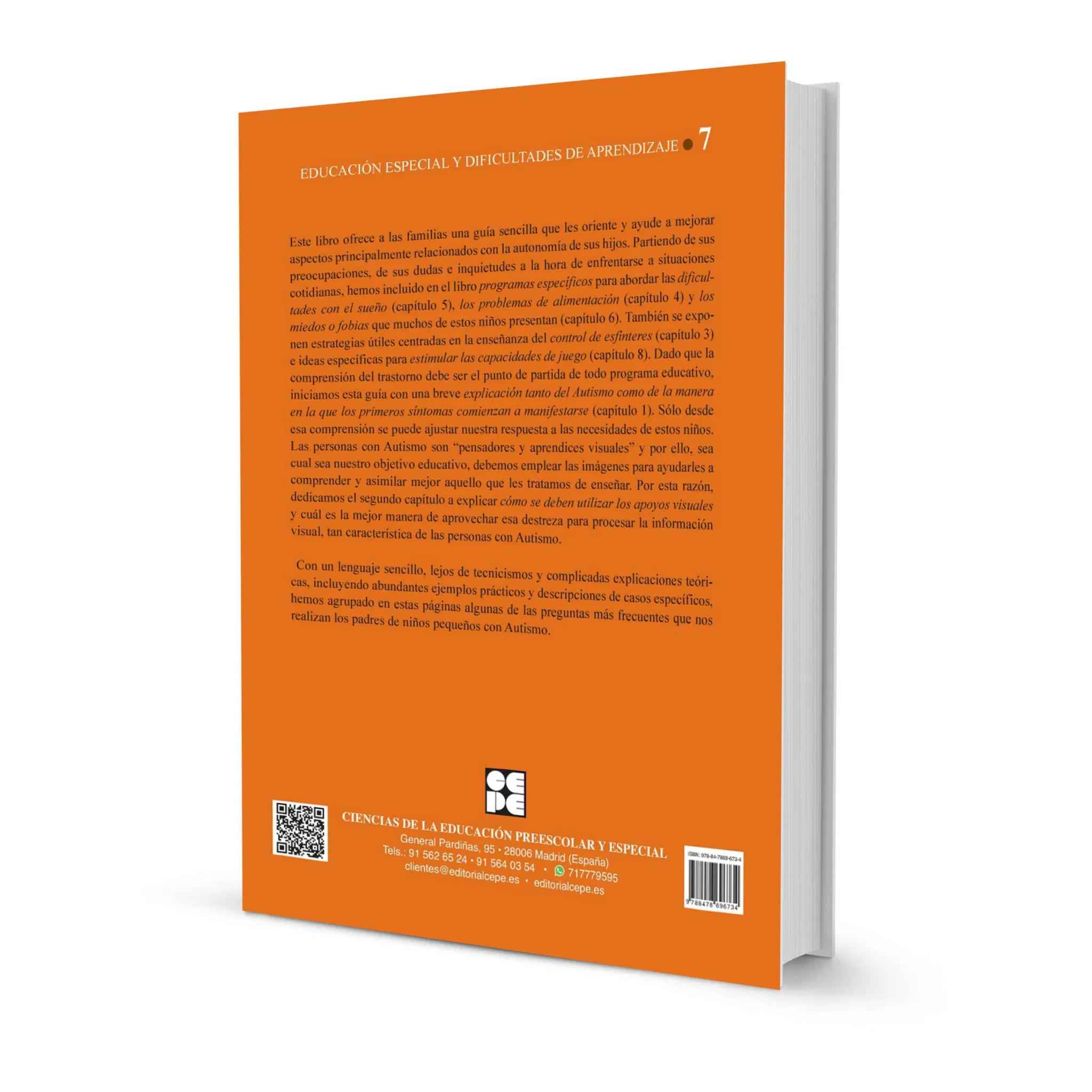 Este libro ofrece a las familias una guía sencilla que les orienta y ayuda a mejorar aspectos principalmente relacionados con la autonomía de sus hijos. Partiendo de sus preocupaciones, dudas e inquietudes a la hora de enfrentarse a situaciones cotidianas, se han incluido en el libro programas específicos para abordar las dificultades con el sueño (capítulo 5), los problemas de alimentación (capitulo 4) y los miedos o fobias que muchos de estos niños presentan (capítulo 6). También se exponen estrategias útiles centradas en la enseñanza del control de esfínteres (capítulo 3) e ideas específicas para estimular las capacidades de juego (capítulo 8). Dado que la comprensión del trastorno debe ser el punto de partida de todo programa educativo, iniciamos esta guía con una breve explicación tanto del Autismo como de la manera en la que los primeros síntomas comienzan a manifestarse (capítulo 1). Sólo desde esa comprensión se puede ajustar nuestra respuesta a las necesidades de estos niños. Las personas con Autismo son “pensadores y aprendices visuales” y por ello, sea cual sea nuestro objetivo educativo, debemos emplear las imágenes para ayudarles a comprender y asimilar mejor aquello que les tratamos de enseñar. Por esta razón, dedicamos el segundo capítulo a explicar cómo se deben utilizar los apoyos visuales y cuál es la mejor manera de aprovechar esa destreza para procesar la información visual, tan característica de las personas con Autismo. Con un lenguaje sencillo, lejos de tecnicismos y complicadas explicaciones teóricas, incluyendo abundantes ejemplos prácticos y descripciones de casos específicos, hemos agrupado en estas páginas algunas de las preguntas más frecuentes que nos realizan los padres de niños con Autismo.